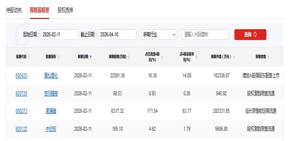 【限售解禁】