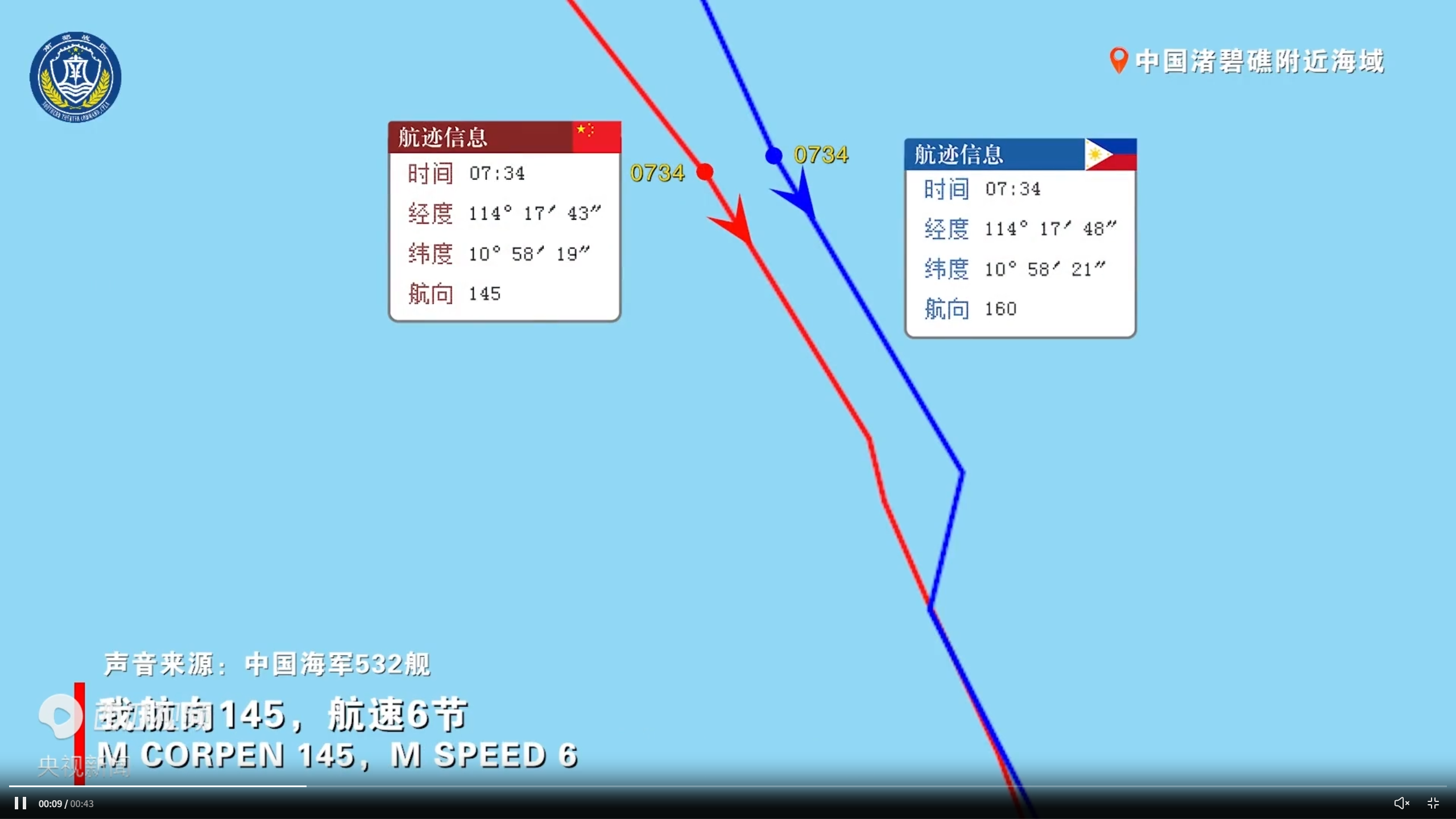 (中国和菲律宾两艘船只的摇荡轨迹,不错彰着看出菲方的策画冲撞)